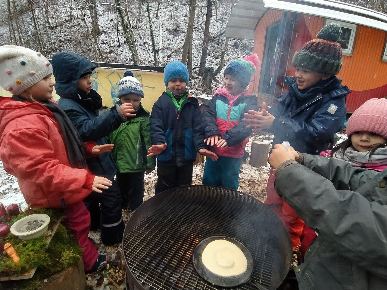 Das „Brotzeiteln“ wird im Winterhalbjahr einmal wöchentlich durch den Suppentag und im Sommerhalbjahr durch den Teiletag bereichert. Dabei genießen die Waldräuber ihre selbst gekochte Gemüsesuppe am offenen Feuer und frönen dem von allen Kindern mitgebrachten Essen, dass sie mit ihren Kindergartenfreunden teilen. Darüber hinaus runden saisonale, von den Kindern selbst zubereitete Leckereien, wie beispielsweise Fichtenspitzen- und Holundersirup oder würzige Kräuterbutter im Frühjahr sowie selbstgemachtes Apfelmus zu Pfannkuchen am Feuer, unser kulinarisches Kindergartenjahr farbenfroh ab.